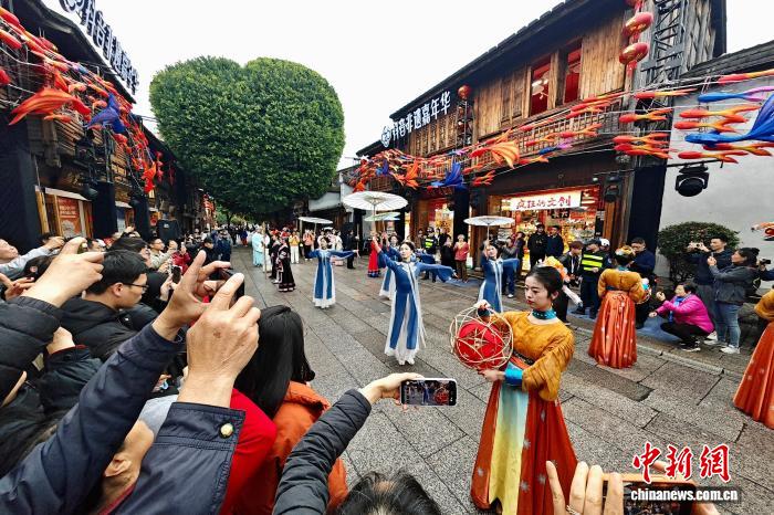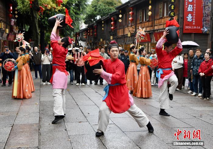 今日祸修祸州3坊7巷古街区“非遗”巡行闹元宵。闽剧、祸州3宝、青白酒、畲族文明、油纸伞、鱼灯取滚灯6年夜特质圆阵顺次明相,从静态显示变成动静前进,让闽皆“非遗”正在坊巷间伶俐死辉,为搭客带去沉醉式阅历。图为畲族风气演出吸收好多不雅寡围不雅。中新社记者 王东亮 摄